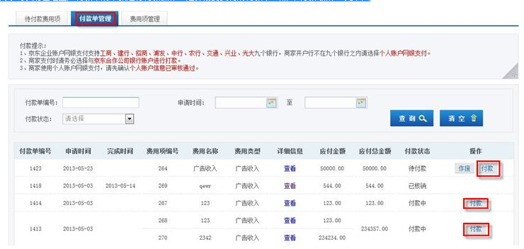 2、商家支付时请务必选择与京东合作公司银行账户进行打款。