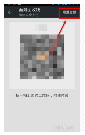 生成的二维码可直接进行支付,为了方便对方付款可以自己填写收款金额,点击右上角的“设置金额”。
