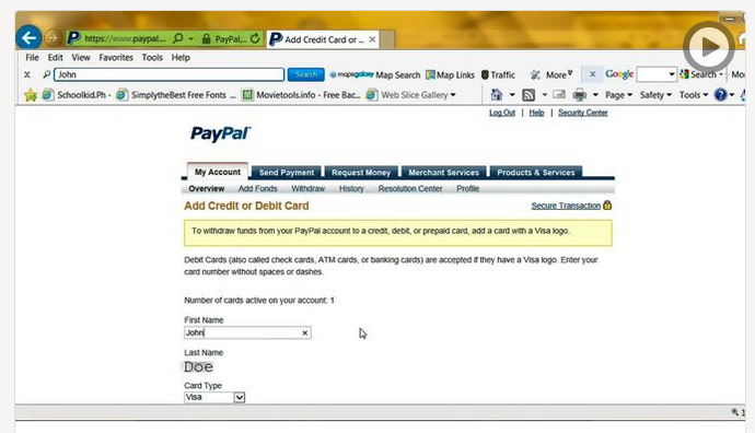 · 选定平台后,根据页面出现的指示开设企业账户。一旦贝宝核实你的资料后,你就能在你的网站或通过电话、电邮、传真接受信用卡付账,并接受电子支票和电邮付款。