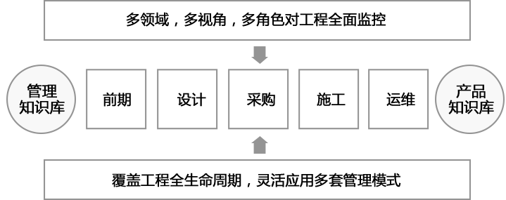 在传统工程项目管理模式上,设计、采购、施工部门之间互为独立,已经不能适应整体层面 对于进度、资源、成本管理的要求,因此本系统进行了紧密整合,提高了各阶段的业务衔接 数据共享