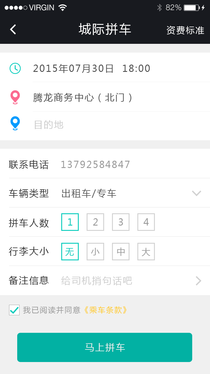根据流程,下单信息可选,轻松约到车辆