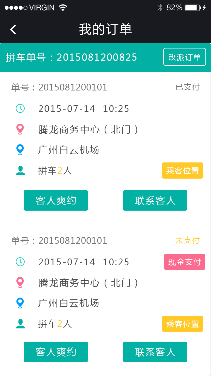 可查询订单进行情况以及联系乘客