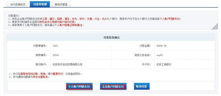 2、商家支付时请务必选择与京东合作公司银行账户进行打款。