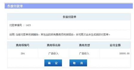 2、作废单据不会删除已经生产的费用项,但是会将付款申请单进行取消,商家需要重新选择费用项进行生成付款申请操作,方可继续支付。作废付款确认见下图: