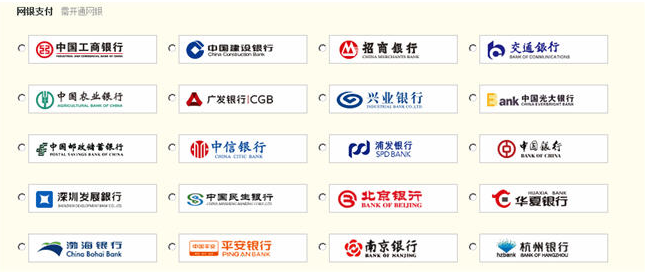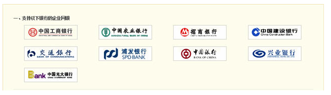 商家选择对应的银行进行支付,目前支持九大银行企业账户网银支付。