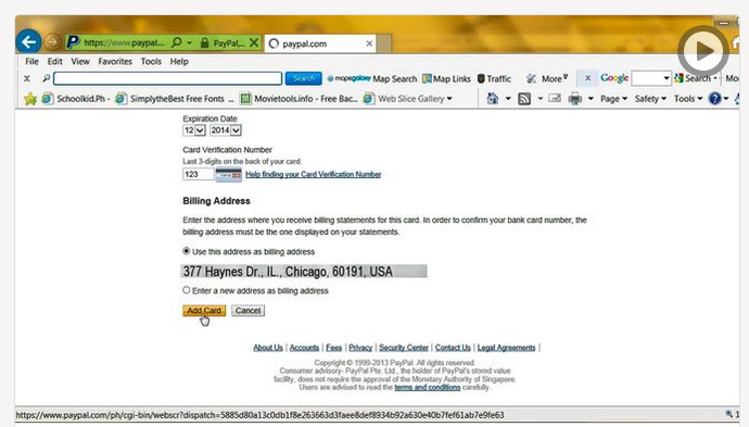 · 选定平台后,根据页面出现的指示开设企业账户。一旦贝宝核实你的资料后,你就能在你的网站或通过电话、电邮、传真接受信用卡付账,并接受电子支票和电邮付款。