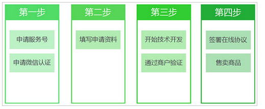 1、登录公众平台,选择"微信支付"=》点击“开通”=》按照页面提示填写资料;企业号请登录企业号管理平台,选择“服务中心”=》点击“微信支付”进行开通。